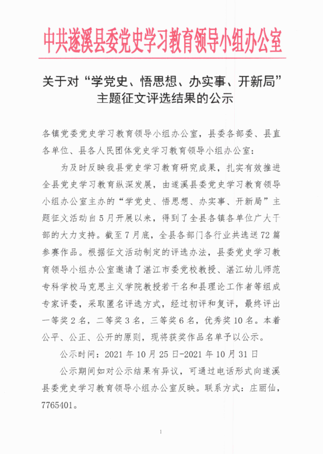 關(guān)于對“學(xué)黨史、悟思想、辦實事、開新局”主題征文評選結(jié)果的公示