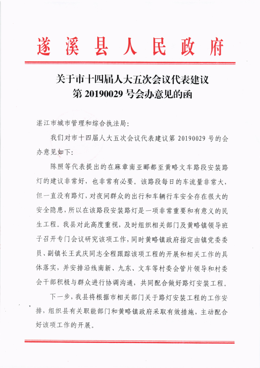 關(guān)于市十四屆人大五次會議代表建議第20190029號會辦意見的函