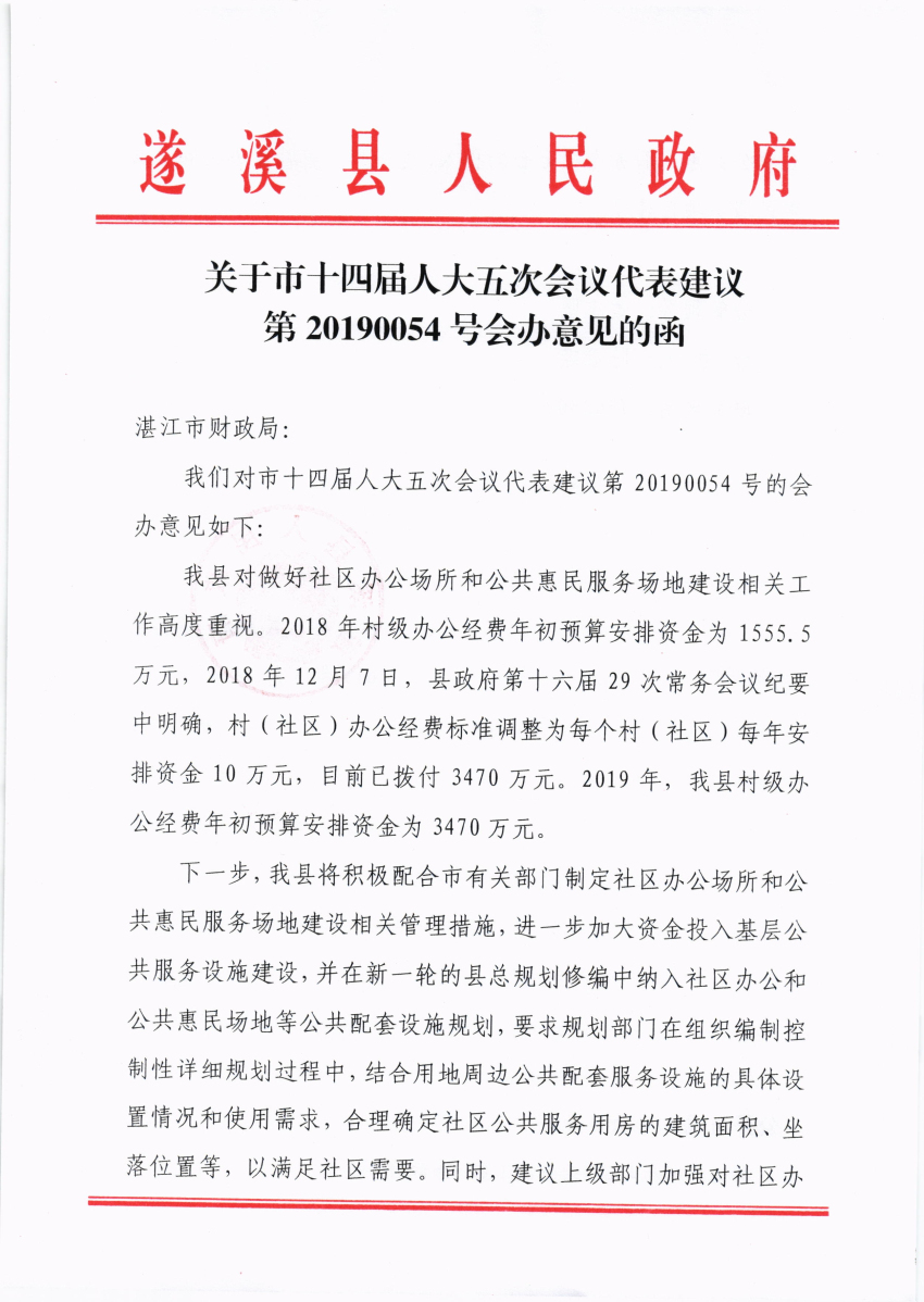 關(guān)于市十四屆人大五次會(huì)議代表建議第20190054號(hào)會(huì)辦意見的函
