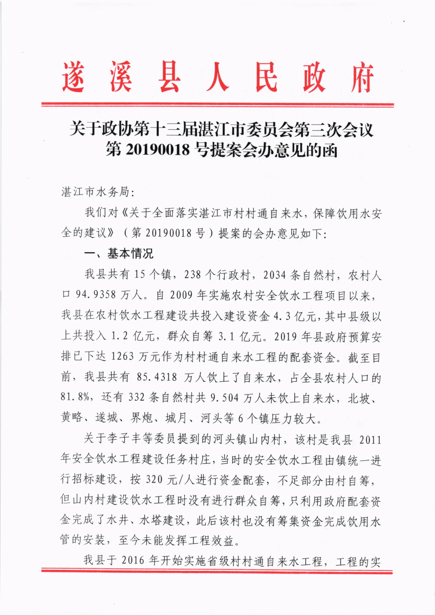 關(guān)于政協(xié)第十三屆湛江市委員會第三次會議第20190018號提案會辦意見的函