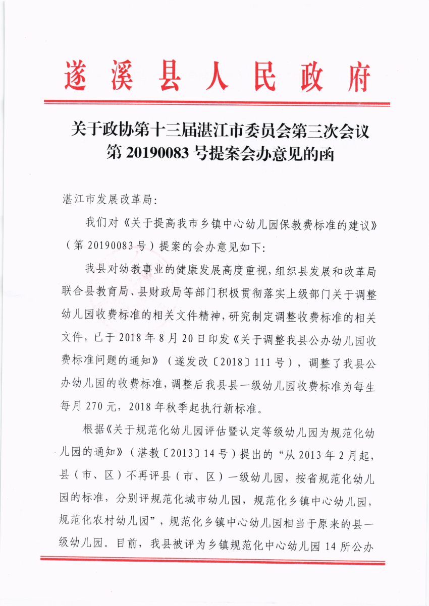 關(guān)于政協(xié)第十三屆湛江市委員會第三次會議第20190083號提案會辦意見的函
