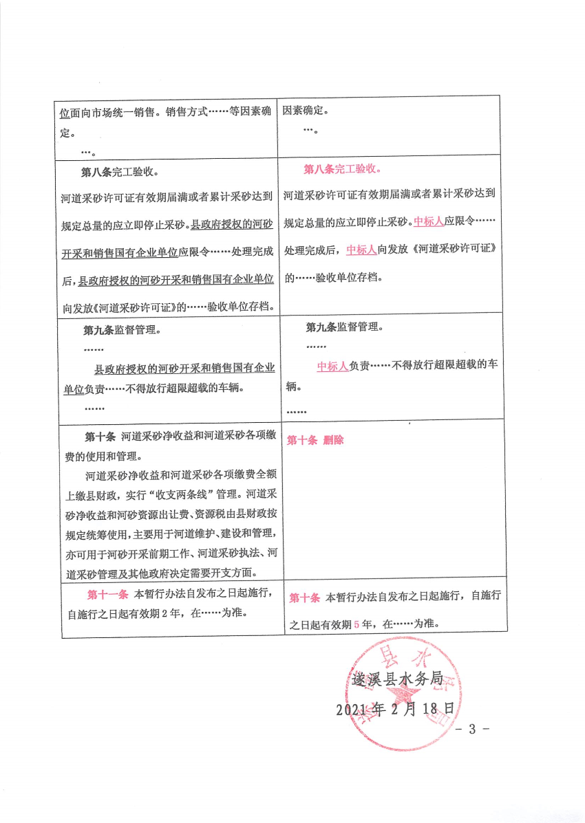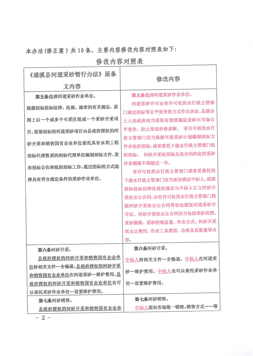 關(guān)于《遂溪縣河道采砂暫行辦法》(修正案)的解讀 | | 作者:遂溪縣水務(wù)局 | 來源:本網(wǎng) | 時間:2021-02-19 15:14:45 點擊數(shù):- 規(guī)范性文件鏈接:遂府規(guī)-2021-001遂溪縣人民政府關(guān)于印發(fā)遂溪縣河道采沙暫行辦法(修正案)的通知(遂府〔2021〕5號) 【打印正文】