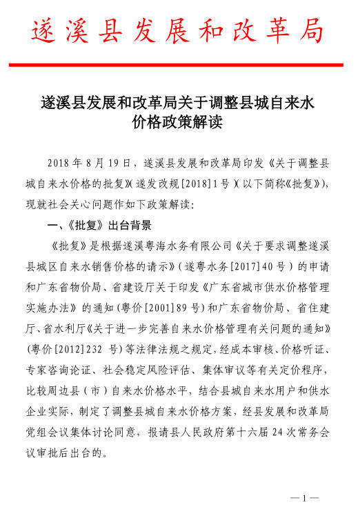 遂溪縣發(fā)展改革局關(guān)于調(diào)整縣城自來水價格政策解讀